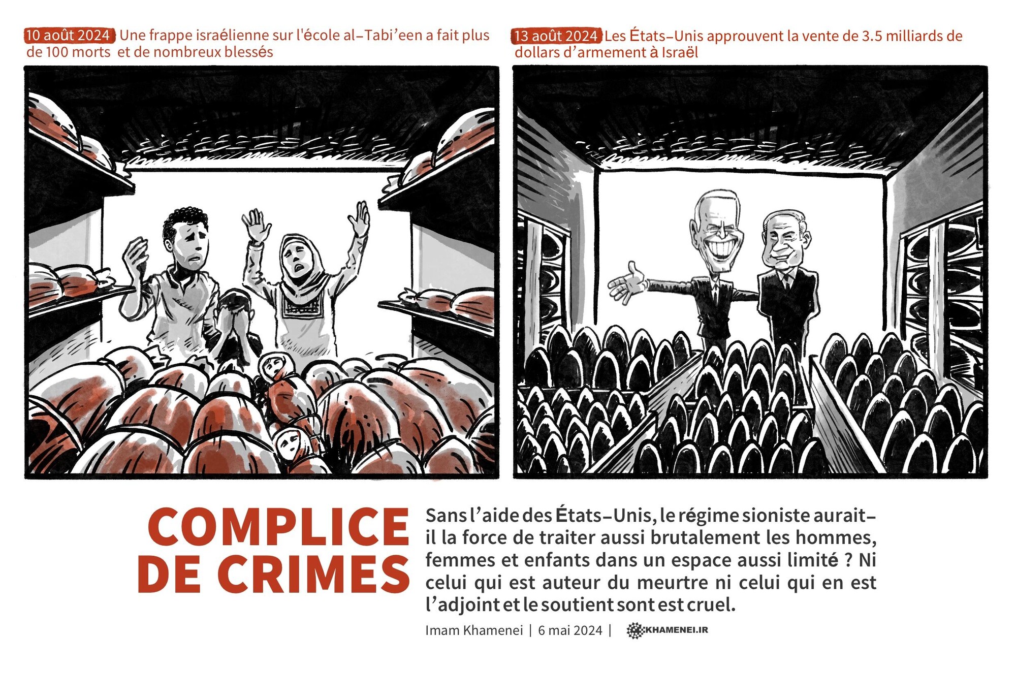 Sans l’aide des États-Unis, le régime sioniste aurait-il la force de traiter aussi brutalement les hommes, femmes et enfants dans un espace aussi limité (à Gaza) ? Ni celui qui est auteur du meurtre ni celui qui en est l’adjoint et le soutient sont est cruel. Imam Khamenei, 6 mai 2024