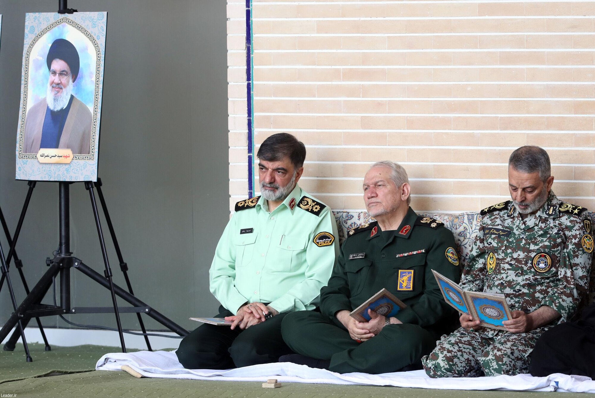L'imam Khamenei, Guide suprême de la Révolution islamique, a assisté à la cérémonie de commémoration en l'honneur du moudjahid sur le chemin de Dieu et porte-étendard de la Résistance, le martyr Sayyid Hassan Nasrallah. Cette cérémonie s'est tenue le 4 octobre 2024, dans la Musalla Imam Khomeiny (RA) de Téhéran , avant la prière du vendredi, dirigée également par Son Eminence.